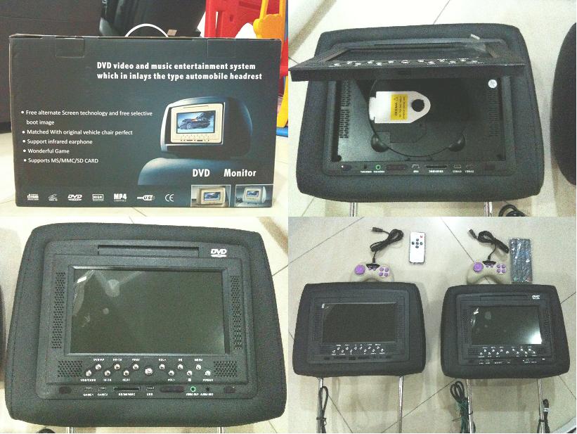 1. 1 pair 7" TFT LCD Headrest Player (1 with DVD player, 1 without)