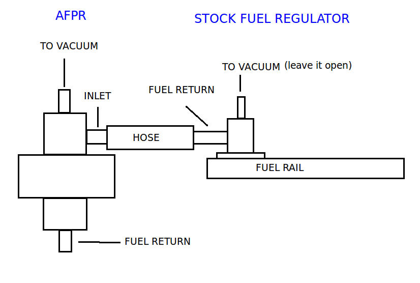 I've lost (actually been stolen) my AFPR fuel rail adaptor. But I think not worth to by the adaptor only cause the AFPR only cap ayam. So I've been thinking if this setup could work. Fuel return from stock regulator are input to AFPR and the vacuum hose leave it open. My thinking is like this picture.