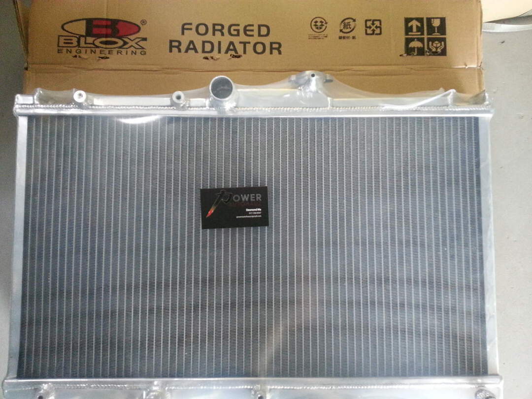 BLOX Engineering Racing aluminum radiators are a perfect upgrade for any high performance or racing application. All radiators are 100% brazed aircraft quality aluminum and feature lightweight 2-row cores. The TIG-welded radiators have billet filler necks and come equipped with a drain plug and 1.1 Bar cap.