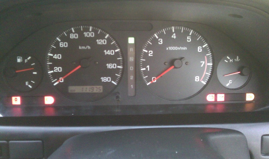 Jap spec meter panel with ~111k km on odometer. Gear indicator is there as opposed to blank strip in 30GV