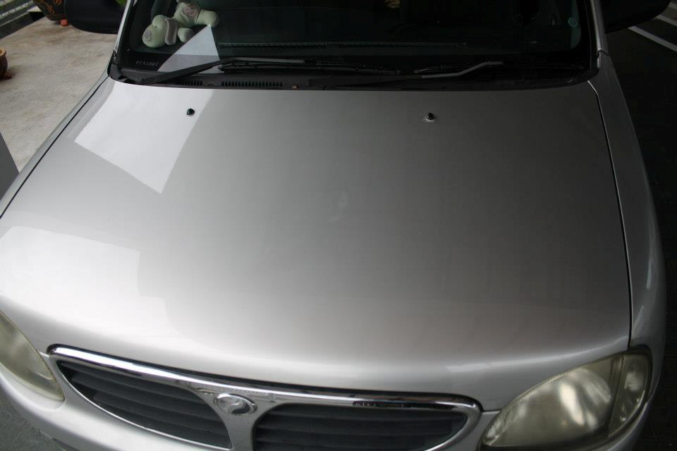 After i bought my new car, i start to learn how to detail it, at 1st i only learn how to clean and also maintaine it, now i think is time for me to learn more on correction part, it take me some time to save money to buy a Makita 9227c rotary from KC, before started i also get some advise from Sifu Seech and also Sife KC, i have the opportunity to meet them both when they come to penang. Sifr KC also demonstrate in front of me how to use the rotary. I think is time for me to have a try on my own how to correct a car. At 1st i have a try on my wife more than 10 years old kelisa before try it on my new car.