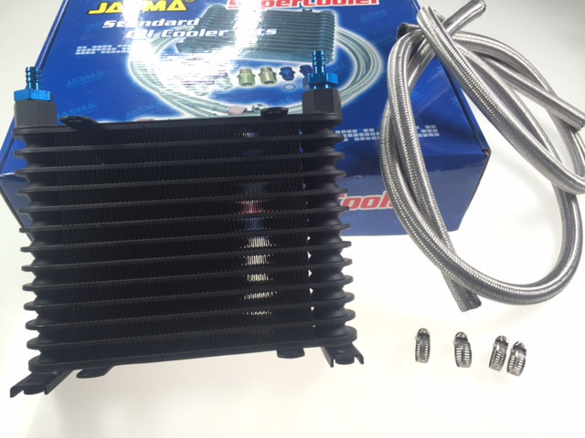 - JASMA ATF (Automatic Transmission/AT) oil cooler complete with braided hoses.