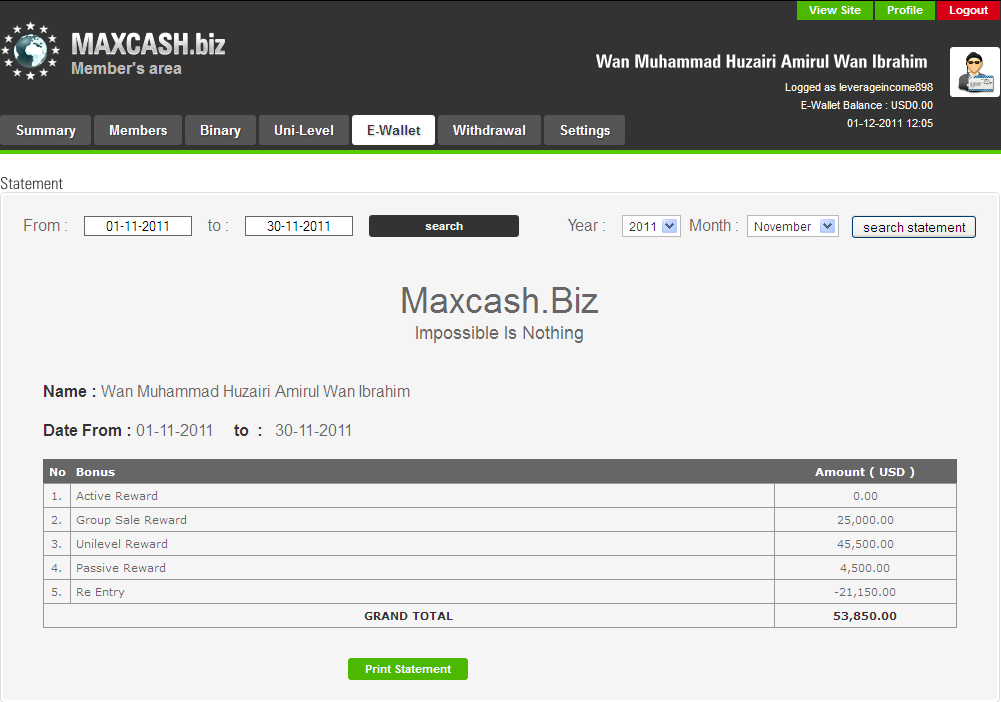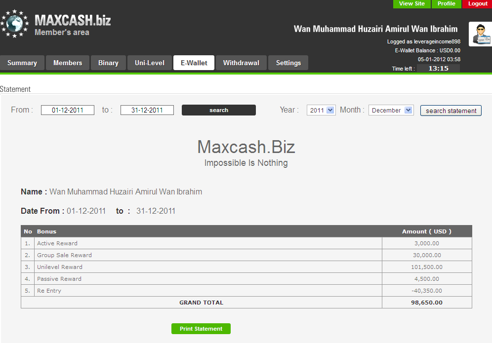 How much income can I generate through Maxcash.Biz?