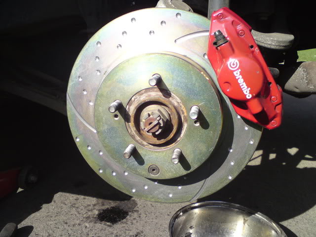 i currently bought 1 set of evo 5 brembo brake, front and rear.... but sadly, with rotor,calipers and rear brake hose only......my car condition is, full evo 4 front parts, rear with evo 3 (4wd)..... 5x114.3 all 4 wheels