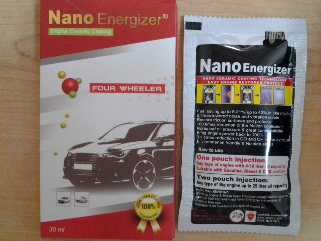 - Nano Energizer recommended for automobile at least 3,000km of use.