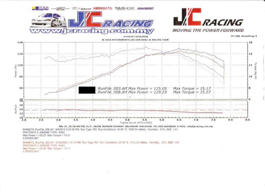 Performance: On wheel - 129hp and 152N.m dynoed at JC Racing with Primax3 RON95.