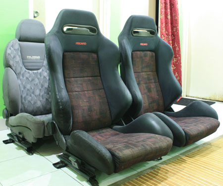 A pair of Mitsubishi Lancer Evolution 4 (IV)seat c/w original railing.