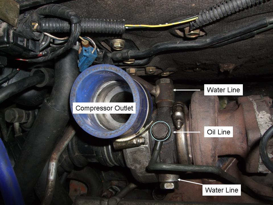 Wanna ask, based on the picture, which water line will be the inlet for water into turbo? and how about the oil line also? is the one showing in the picture is the inlet for oil? or the one at the bottom?