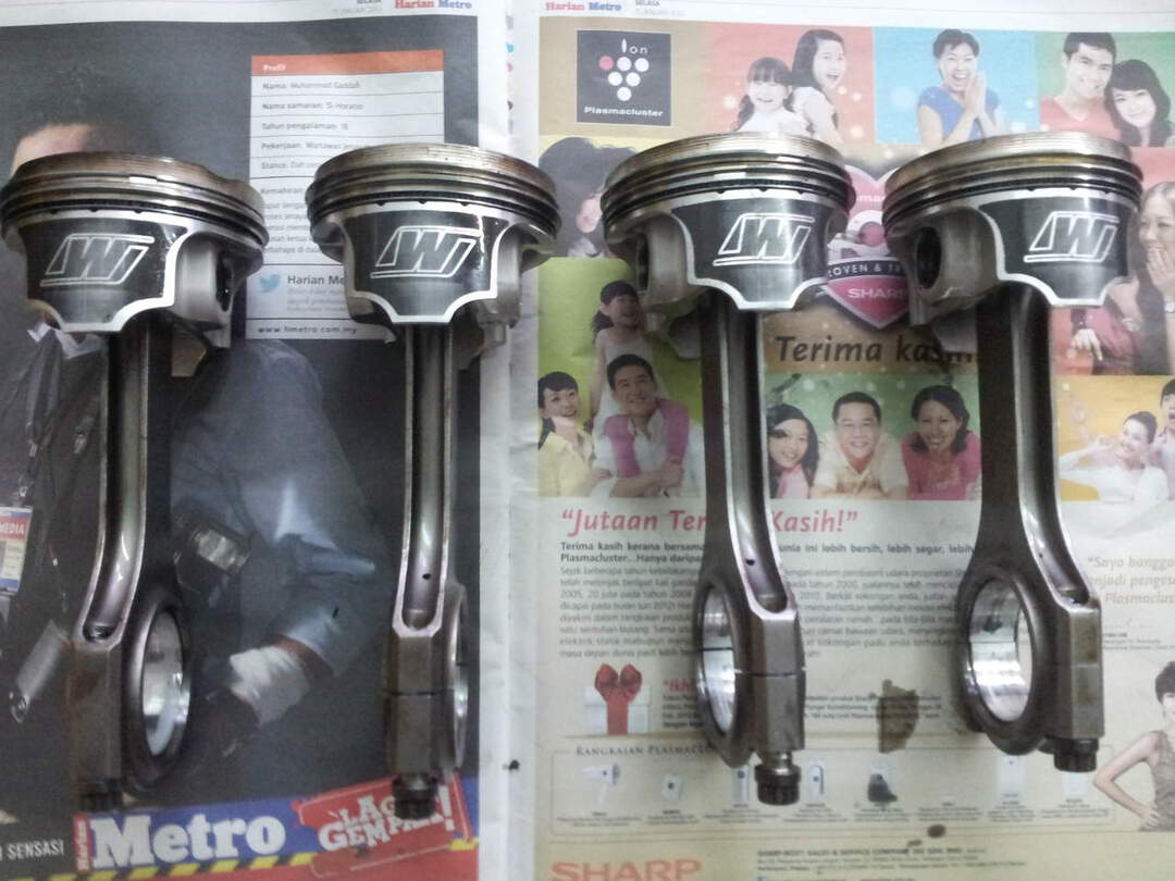 hello ZTH,i would like to sell my Wiseco piston with duratech conrod complete set with piston rings,for turbo users only..taken out from my own engine,it can be used on 4G91/92 or 93T..reason selling because selling of my car..the piston is 82mm..Turbo 9.0:1 CR..bought from MILLENIUM motorsport, I do not sell separately,item is excellent condition 9/10..brand new for wiseco piston RM2300, brand new duratech conrod RM1350..total is RM3650..from here u saved RM1450..pls call for more information..NO SMS PLS! thank u..